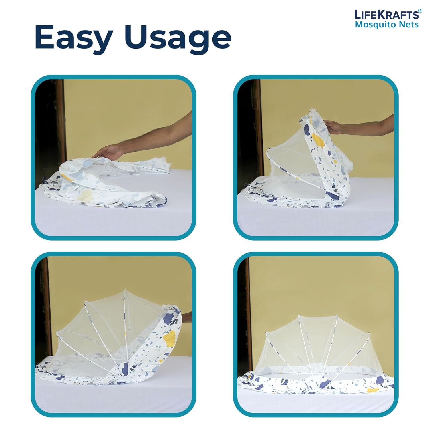 LifeKrafts Foldable Baby Mosquito Net, Bottomless Net for Infants, for Safe & Easy Use,Ensures Your Baby’s Safe Sleep 110 x 65 x 60cms, for Babies & Toddlers (0 to 18 Months) Color Pattern,Multicolor